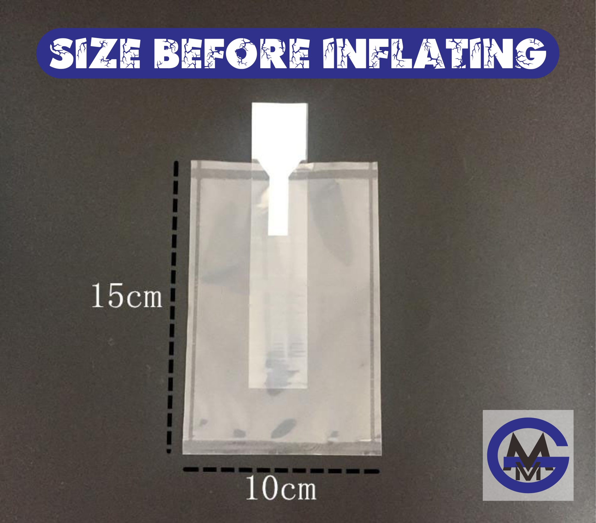 • Ukuran Setelah di gelembungkan: Sekitar 6 x 7 x 11 cm (jumlah udara dapat di kontrol sendiri)