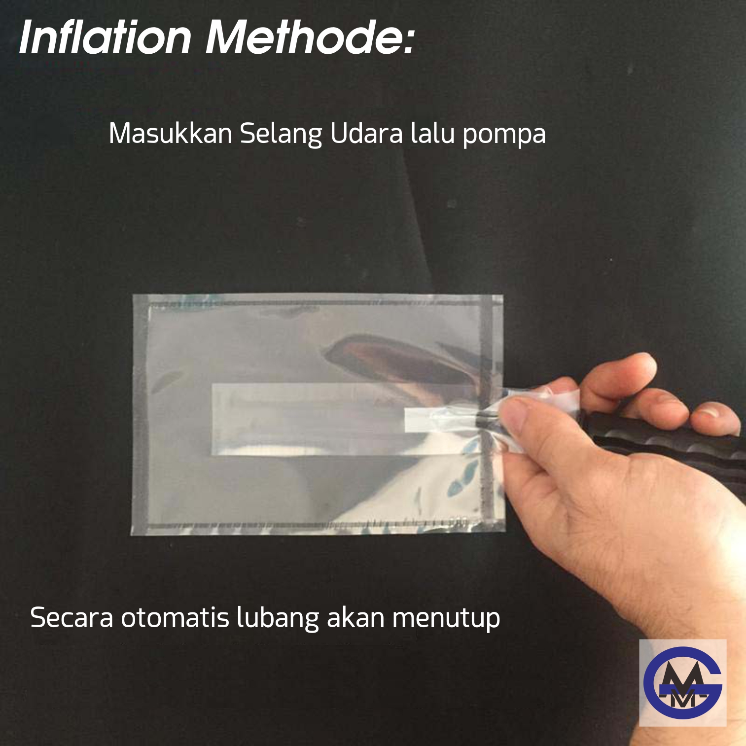 3. Inflator Manual: Penggunaan inflator manual memudahkan Anda untuk mengisi udara ke dalam tas bantal tiup kapan pun di perlukan, tanpa perlu bergantung pada sumber daya listrik.