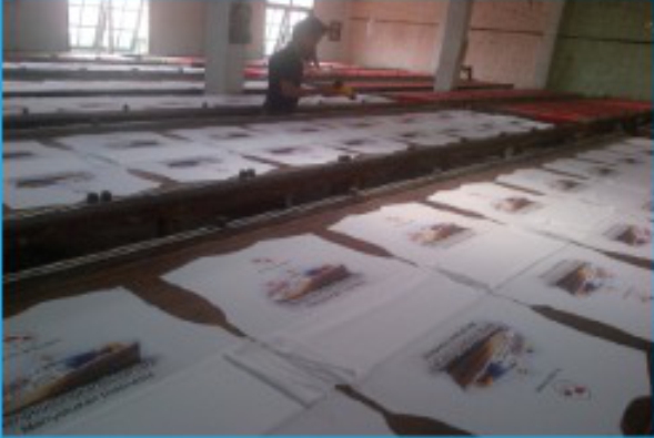 Proses produksi kami dari bahan Roll, bukan kaos jadi yang disablon.