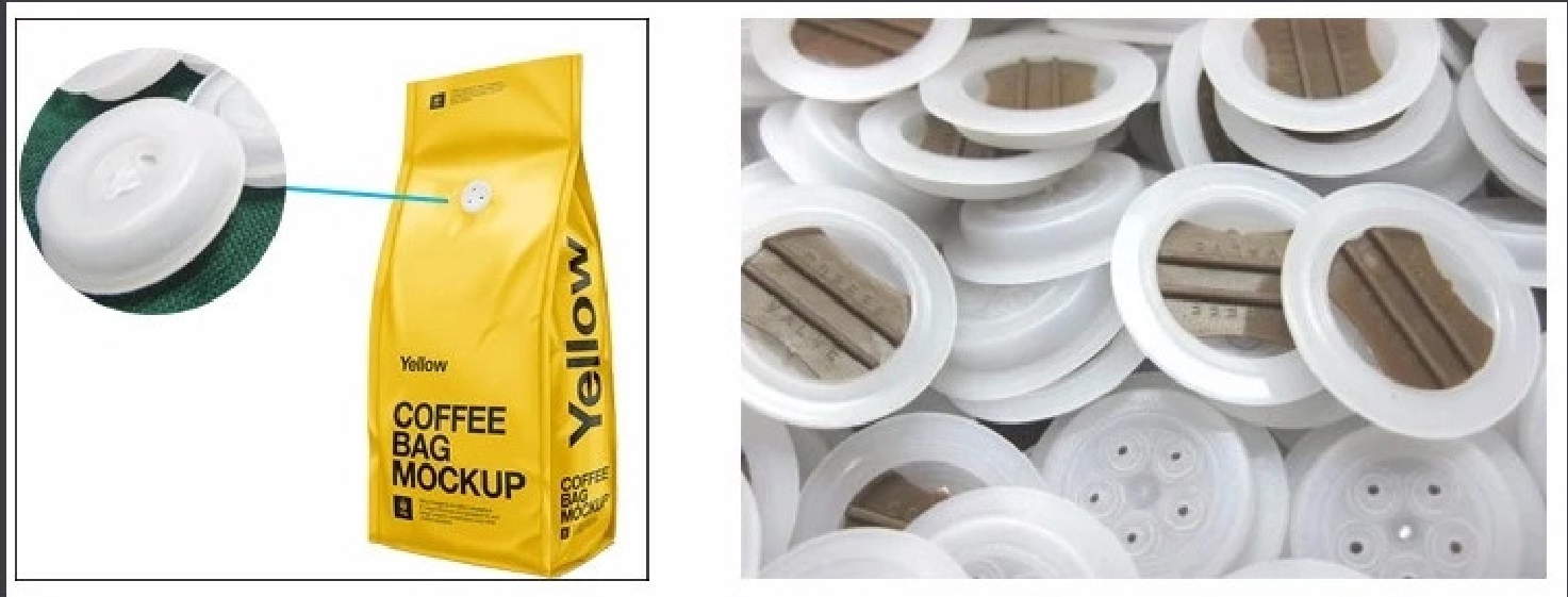 Degassing valve adalah solusi cerdas untuk masalah tekanan yang di sebabkan oleh degassing pada kemasan kopi. Degassing valve memungkinkan gas CO2 yang di hasilkan oleh biji kopi untuk keluar dari kemasan, sementara menghalangi udara dari luar untuk masuk.