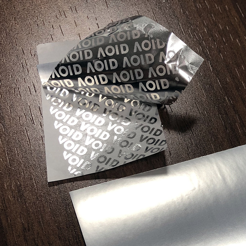 Ketika stiker ini di lepas, tulisan “VOID” atau teks kustom lainnya akan muncul pada permukaan dan stiker itu sendiri, menunjukkan bahwa